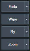 Click the arrow next to each button to customise the transition effect and the duration.